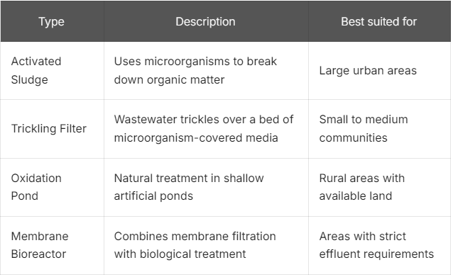 There are several types of sewerage treatment plants, each suited to different needs and environments: